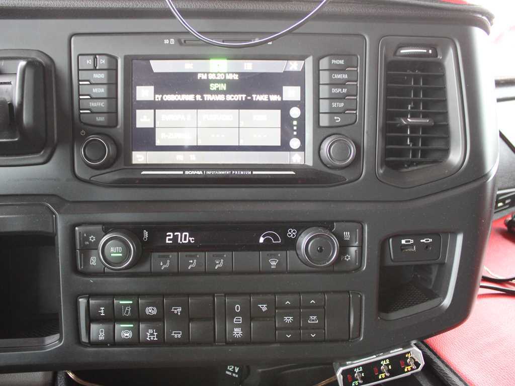 2 lůžka, ABS, AdBlue, asistent jízdy v jízdním pruhu, aut. klimatizace, aut. převodovka, autochladnička, autorádio, AUX, boční spoilery, centrál dálkový, centrální zamykání, denní svícení, EDS, el. okna, el. zrcátka, hydraulika pro sklápění, imobilizér, kabina dlouhá, kabina vysoká, mlhovky, motorová brzda, multifunkční volant, nastavitelný volant, nezávislé topení, otáčkoměr, palubní počítač, pérování vzduch, plní 'EURO VI', pohon 4x2, polohovací sedadla, posilovač řízení, protiprokluzový systém kol (ASR), regulace výšky podvozku, retardér, stabilizace podvozku (ESP), střešní okno, střešní spoiler, tachograf, tempomat, USB, uzávěrka diferenciálu, venkovní teploměr, vyhřívaná sedadla, vyhřívaná zrcátka, výškově nastavitelné sedadlo řidiče.