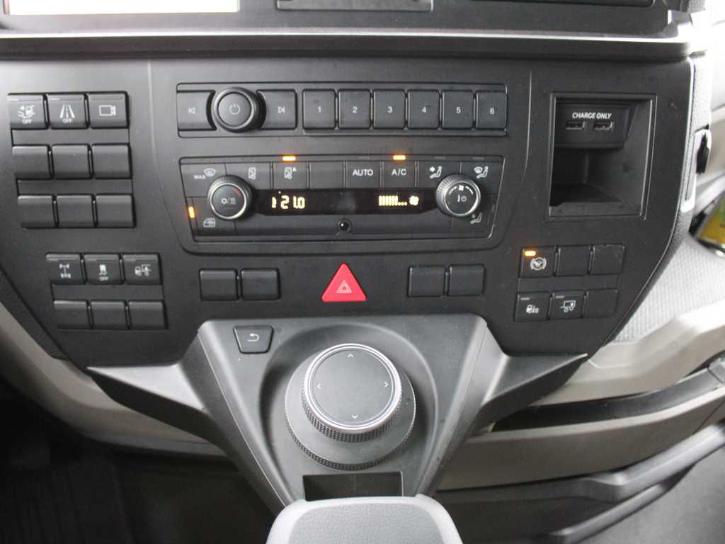 2 lůžka, ABS, adaptivní tempomat, AdBlue, asistent jízdy v jízdním pruhu, asistent udržování odstupu, aut. klimatizace, aut. převodovka, autochladnička, autorádio, boční spoilery, centrál dálkový, centrální zamykání, EDS, el. okna, el. zrcátka, imobilizér, kabina dlouhá, kabina vysoká, LED denní svícení, mlhovky, motorová brzda, multifunkční volant, nastavitelný volant, nezávislé topení, otáčkoměr, palubní počítač, pérování vzduch, plní 'EURO VI', pohon 4x2, polohovací sedadla, posilovač řízení, protiprokluzový systém kol (ASR), regulace výšky podvozku, stabilizace podvozku (ESP), střešní okno, střešní spoiler, tachograf, USB, uzávěrka diferenciálu, venkovní teploměr, vyhřívaná sedadla, vyhřívaná zrcátka, výškově nastavitelné sedadlo řidiče.